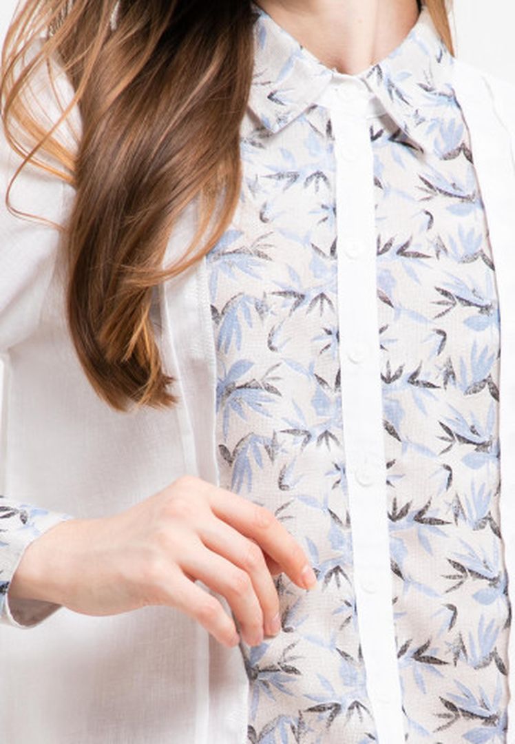 Triset Blouse semi tunic dengan cuttingan loose, model kerah kemeja, variasi di bagian tengah, full menggunaka plaket, lengan panjang, detail material katun.