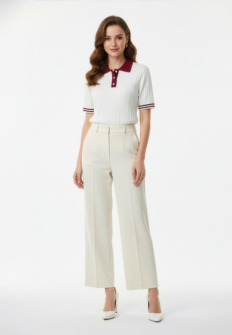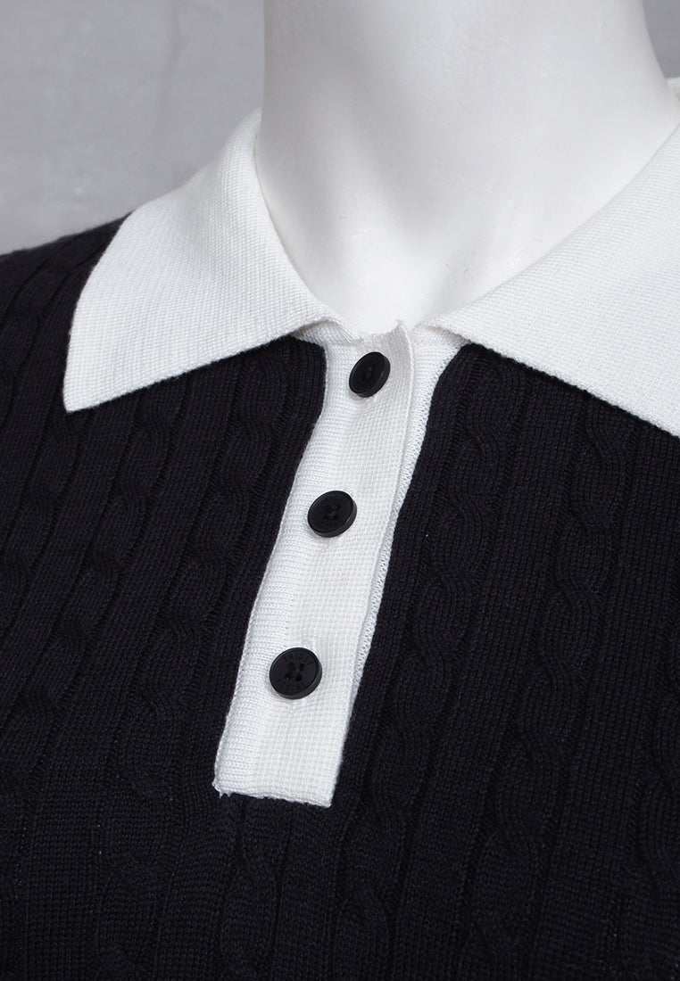 Triset Knitwear dengan cuttingan reguler fit, motif bertekstur timbul, menggunakan variasi warna di bagian ribs, model shirt collar, menggunakan plaket dan kancing, bahan adem dan streach, detail material 60% Rayon, 20% Cotton & 20% Nylon.