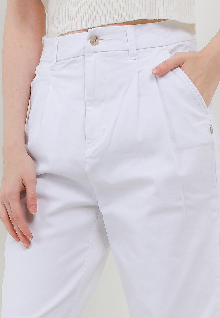 Triset Chino Pants reguler fit, letak ban pas di pinggul/natural rise, sepasang saku di bagian samping, detail material 98% katun & 2% spandeks.