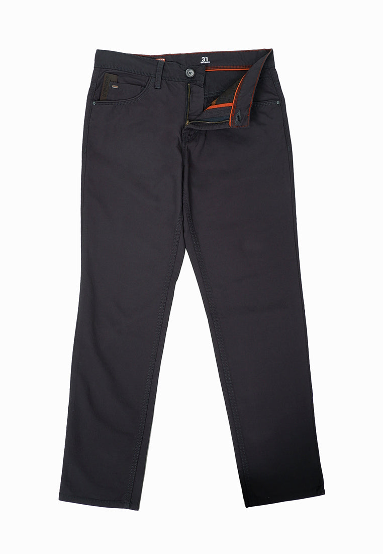 WATCHOUT Signature Five Pocket Pants, WATCHOUT- Gloucester Pants adalah celana five pocket casual dari bahan Cotton, Comfort and mobility meet for casual look, Reguler Fit, Letak Ban pas dibawah di pinggang, Straight leg opening, Warna Charcoal, 100% Cotton, Imported Material, Bahan Celana tidak Stretch