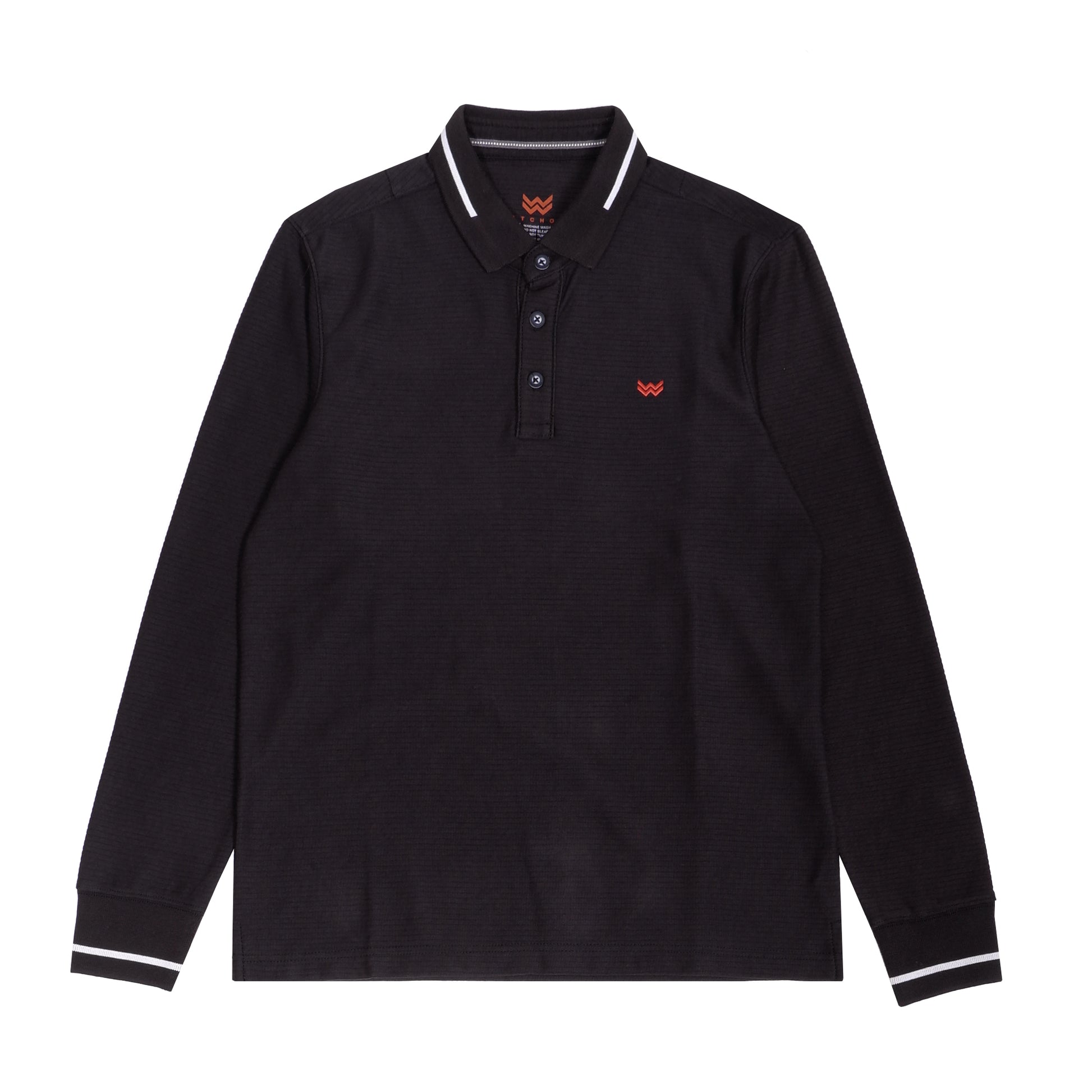 WATCHOUT LONG SLEEVE POLO SHIRT Kaos polo berlengan Panjang dari WATCHOUT dengan kerah kemeja bercorak dari bahan katun, Reguler Fit, Terbuat dari bahan 65% Katun, 35% Poliester ,Corak pique siro, Lengan Panjang, Kerah kemeja dengan 3 kancing, detail embroidery WATCHOUT di dada kiri Warna Black dan Grey |